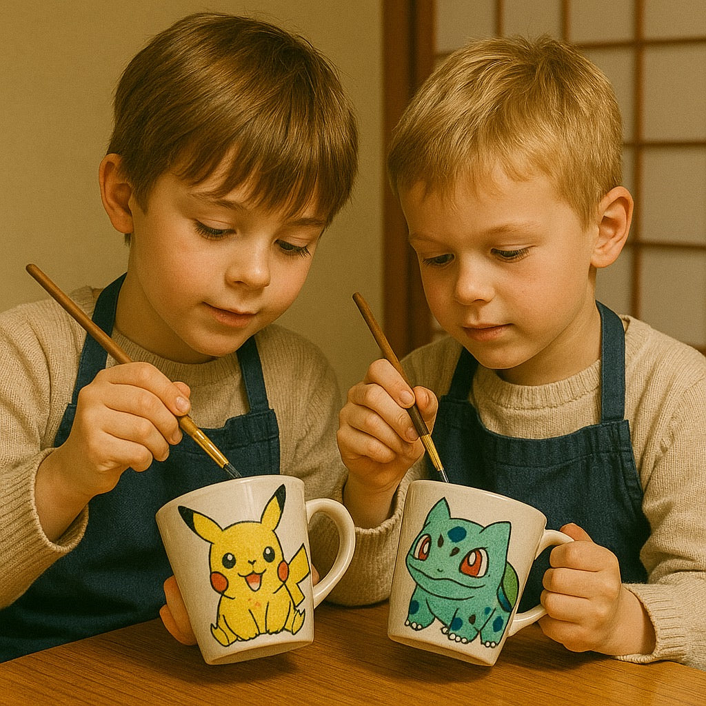 【渋谷 土日祝】好きな画像を描くプラン・茶器の絵付とお茶とお菓子の体験 お得なお子様プラン(小学生まで)